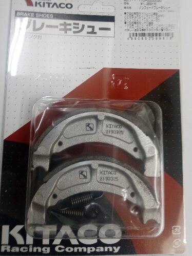 これだっ キタコ ノンフェードブレーキシュー(SY-3N) 847円 を会社のバイク博士に教えていただきながら交換しました 前のタイヤの赤丸にボルトが入っていてナットでしめてあるので片方を押さえながら緩めて外します。 この時私は工具箱を車体の下に入れて、…